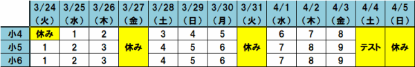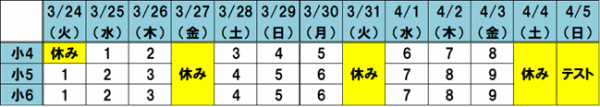 小4は毎週火・木曜日、
